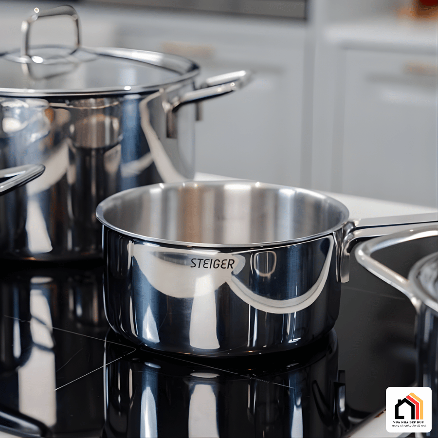 Ngoài ra, inox không phản ứng với thực phẩm trong quá trình nấu nướng, giúp bảo toàn hương vị món ăn và đảm bảo an toàn cho sức khỏe người dùng. Với Bộ nồi 5 món Inox cao cấp Steiger Nova, bạn có thể yên tâm sử dụng mỗi ngày mà không lo biến đổi chất.