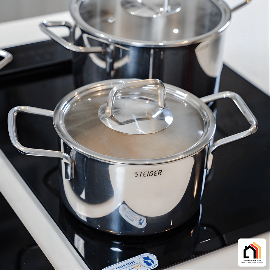 Sự linh hoạt này giúp người dùng không phải lo lắng khi thay đổi thiết bị nấu nướng trong gia đình. Dù sử dụng loại bếp nào, Bộ nồi 5 món Inox cao cấp Steiger Nova vẫn đảm bảo hiệu suất nấu tối ưu.