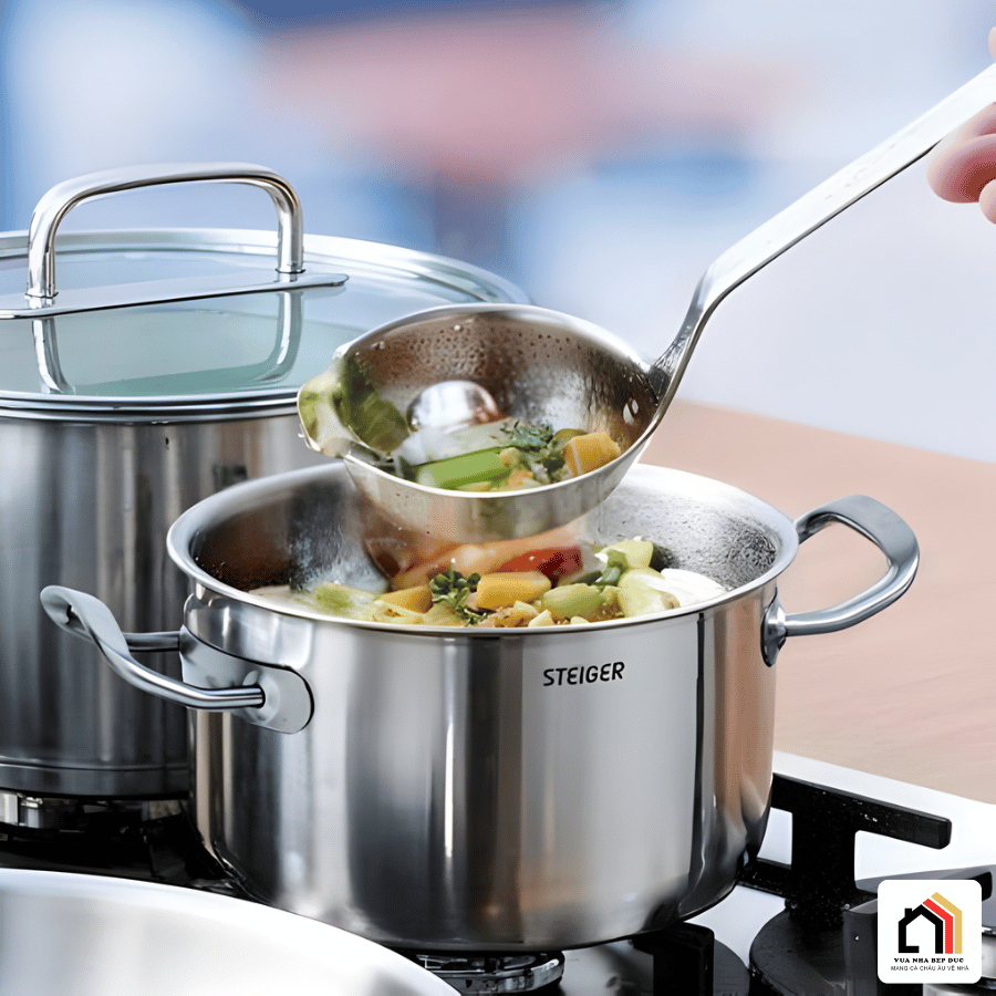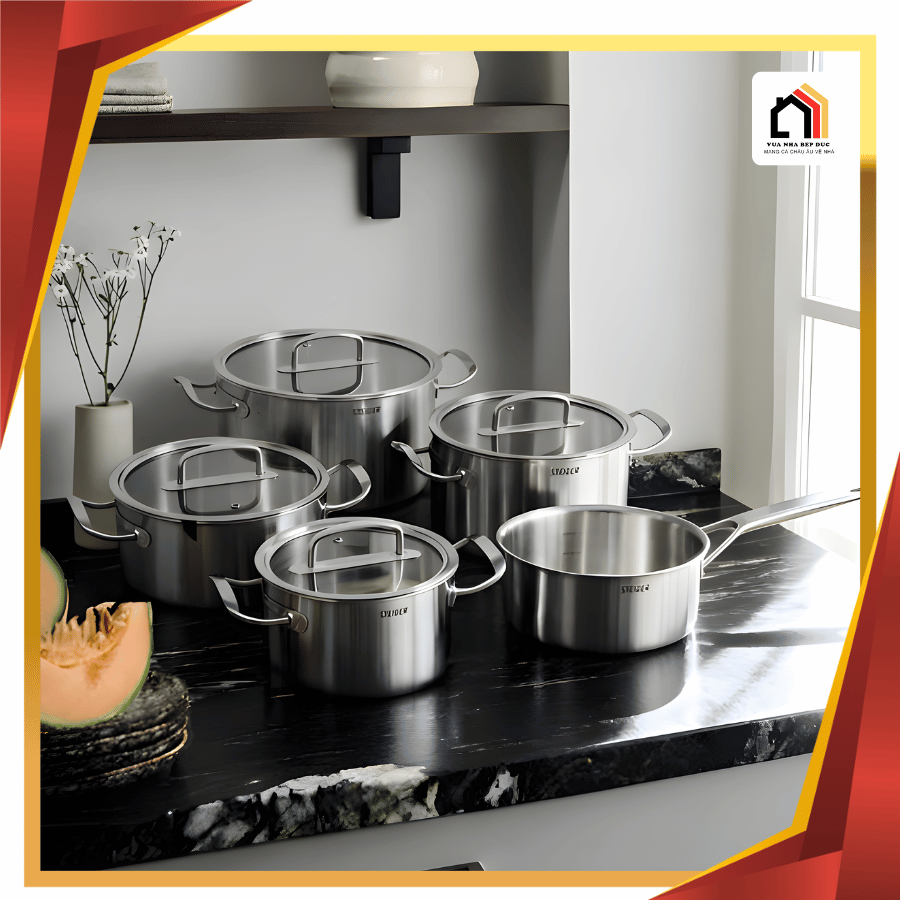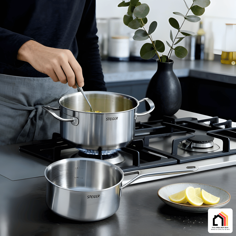 Một trong những yếu tố quan trọng làm nên giá trị của Bộ nồi 5 món Steiger Element chính là chất liệu inox cao cấp được sử dụng trong toàn bộ sản phẩm. Inox có khả năng chịu nhiệt tốt, độ bền cao và đặc biệt không bị ăn mòn trong quá trình sử dụng lâu dài. Nhờ đó, bộ nồi luôn giữ được vẻ ngoài sáng đẹp và hiệu năng ổn định theo thời gian.