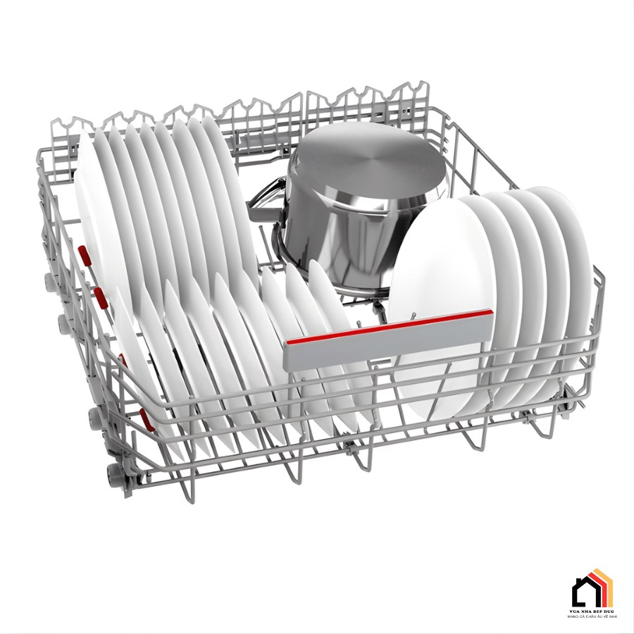 Nhờ hệ thống giàn rửa Max Flex, Máy rửa bát độc lập Bosch SMS6ZCI16E PerfectDry cho phép sắp xếp chén bát linh hoạt và an toàn hơn trong mỗi chu trình rửa. Các bánh xe trượt êm ái giúp thao tác kéo – đẩy khay nhẹ nhàng, trong khi các dải silicon chống trượt bảo vệ ly thủy tinh hiệu quả. Thiết kế này thể hiện rõ triết lý thiết kế sang trọng, hiện đại kết hợp tính thực tiễn trong từng chi tiết nhỏ.
