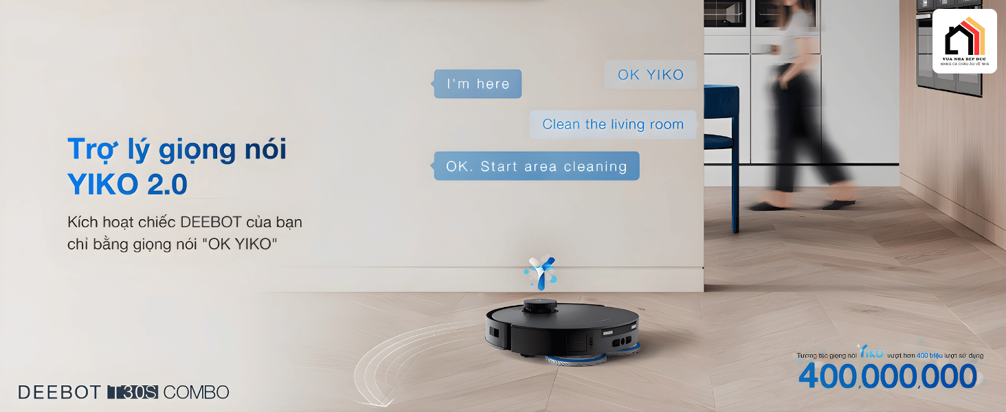 Robot hút bụi lau nhà Ecovacs T30S Combo được trang bị trợ lý giọng nói YIKO AI thông minh, cho phép điều khiển bằng ngôn ngữ tự nhiên một cách dễ dàng. Hệ thống sử dụng ba micro với khả năng nhận diện giọng nói chính xác, đảm bảo tỷ lệ kích hoạt cao và phản hồi nhanh chóng.