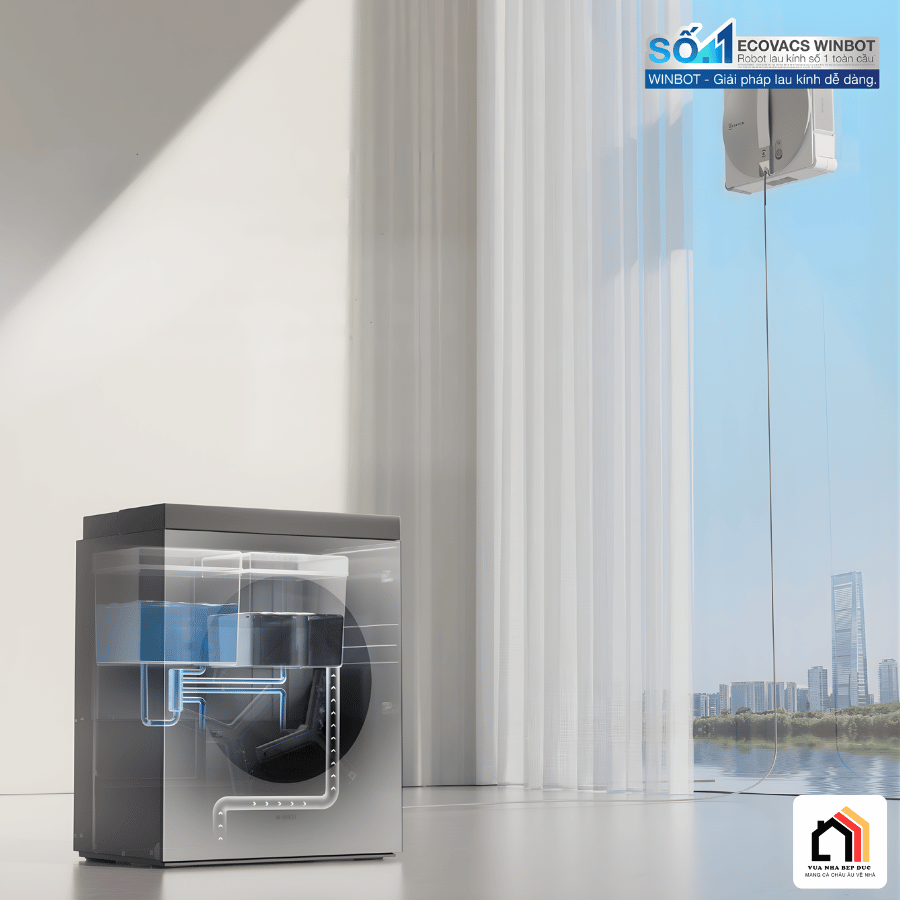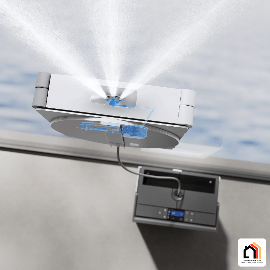 Sau khi hoàn tất quá trình làm sạch, thanh gạt sẽ loại bỏ hoàn toàn nước bẩn và giữ lại độ ẩm lý tưởng cho giẻ lau, giúp kính được làm sạch mà không để lại vệt. Toàn bộ quá trình diễn ra nhanh chóng chỉ trong vòng 1 phút, đảm bảo giẻ lau luôn sạch và sẵn sàng cho chu kỳ tiếp theo.