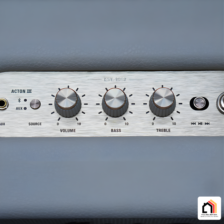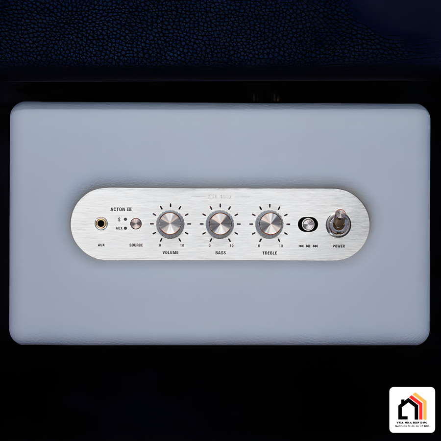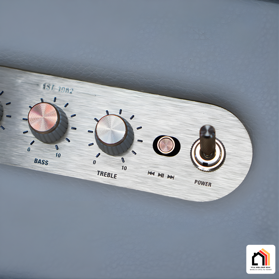 Điểm nhấn độc đáo trên Loa Marshall Acton 3 nằm ở bảng điều khiển phía trên, nơi dải chữ “Marshall 1962” được bố trí khéo léo như một lời khẳng định về lịch sử hơn 60 năm phát triển của thương hiệu. Các núm chỉnh Volume, Bass, Treble cùng công tắc nguồn mới đều được chế tác từ kim loại đồng, mang hơi thở rock & roll cổ điển, tạo cảm giác cao cấp ngay từ cái chạm đầu tiên.