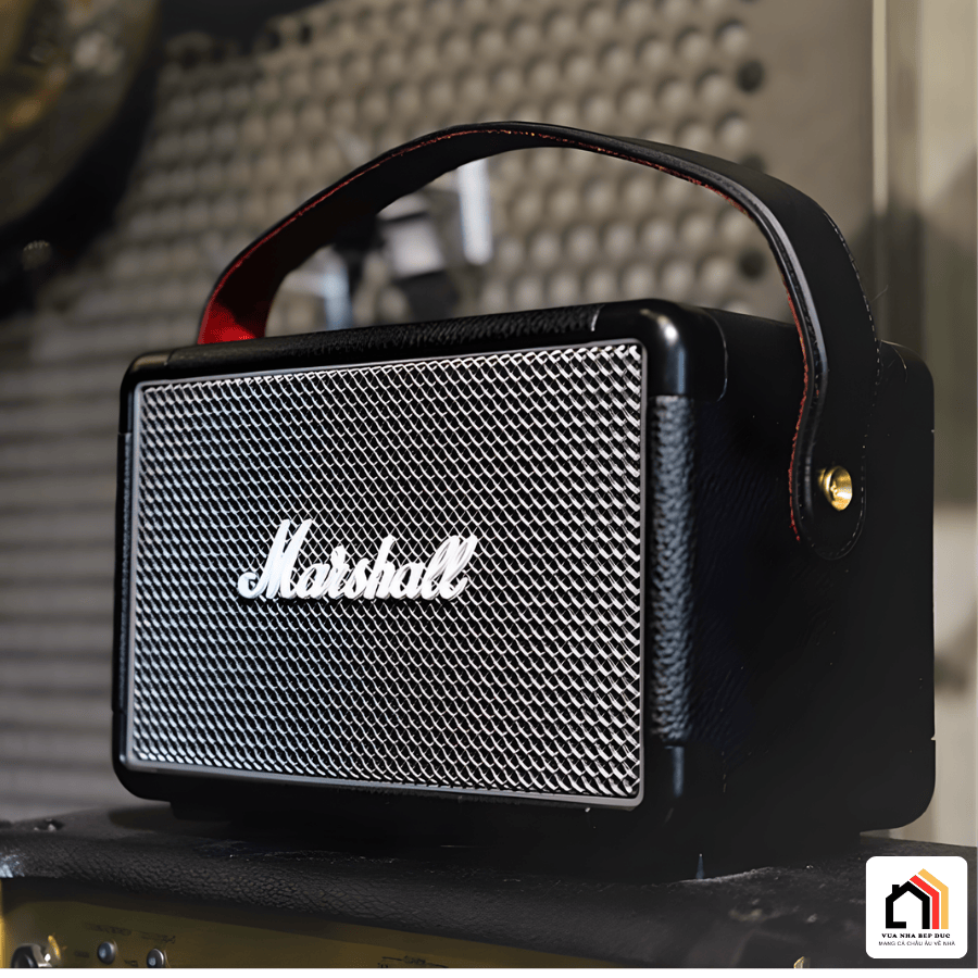 Vỏ vinyl cao cấp, lưới kim loại chắc chắn và logo Marshall biểu tượng.
