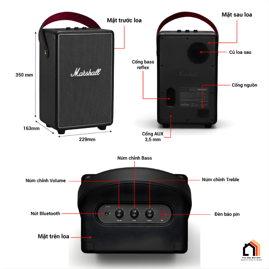 Điểm mạnh của Loa Marshall Tufton nằm ở hệ thống âm thanh toàn dải 3 đường tiếng cho công suất lớn, đủ khả năng khuấy động không gian rộng. Dù sử dụng trong nhà hay ngoài trời, chiếc loa này vẫn mang đến trải nghiệm âm nhạc sống động, mạnh mẽ và đầy cảm xúc.