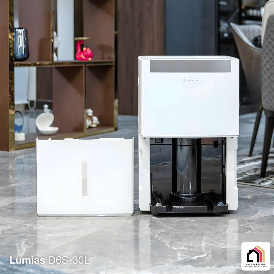 Máy hút ẩm kiêm lọc không khí Lumias D6S-30L là thiết bị kiểm soát độ ẩm hiệu quả, phù hợp cho gia đình, văn phòng hoặc không gian lưu trữ có diện tích lớn. Sản phẩm sở hữu công suất hút ẩm mạnh mẽ lên tới 30L/ngày, hoạt động hiệu quả trong phạm vi đến 125m², giúp duy trì môi trường khô ráo và hạn chế nấm mốc. Thiết bị được trang bị bình chứa nước dung tích lớn 7.9L kết hợp khả năng thoát nước trực tiếp tiện lợi. Ngoài ra, máy còn tích hợp hệ thống lọc kép HEPA H13 và ion bạc kháng khuẩn, màn hình LED trực quan, bảng điều khiển cảm ứng hiện đại, vận hành êm ái chỉ 45dB và hỗ trợ kết nối thông minh qua ứng dụng MiHome.