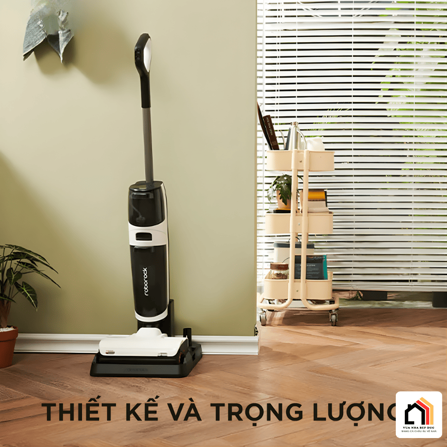 Thiết kế thon gọn và trọng lượng nhẹ giúp máy hút bụi lau nhà dễ điều khiển, đặc biệt là ở những vị trí khó tiếp cận như gầm giường, gầm tủ hay các góc khuất. Ngoài ra, đừng quên kiểm tra các bộ phận như hộp nước, hộp chứa bụi và con lăn để đảm bảo máy phù hợp với thói quen sử dụng của bạn.
