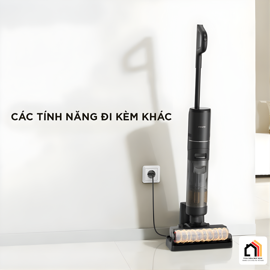 Một số tính năng hiện đại giúp nâng cao trải nghiệm khi sử dụng máy hút bụi lau nhà như: tự động giặt & sấy con lăn, cảm biến nhận diện vết bẩn, màn hình hiển thị thông minh, thông báo bằng giọng nói… Những tính năng này không chỉ mang lại sự tiện lợi mà còn giúp tối ưu hiệu quả vệ sinh.