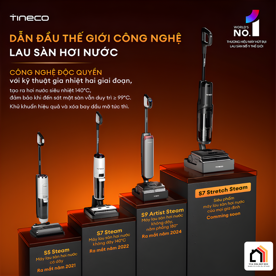 Phiên bản Tineco Floor One S7 Stretch Steam là dòng máy hút bụi lau nhà cao cấp sở hữu lực hút 22.000Pa kết hợp với công nghệ hơi nước HyperSteam 140°C. Máy có khả năng làm sạch sâu, diệt khuẩn mạnh mẽ và xử lý các vết bẩn khó chỉ trong một lần di chuyển. Nhờ thiết kế gập 180°, việc làm sạch gầm giường, sofa hay góc khuất trở nên cực kỳ dễ dàng.