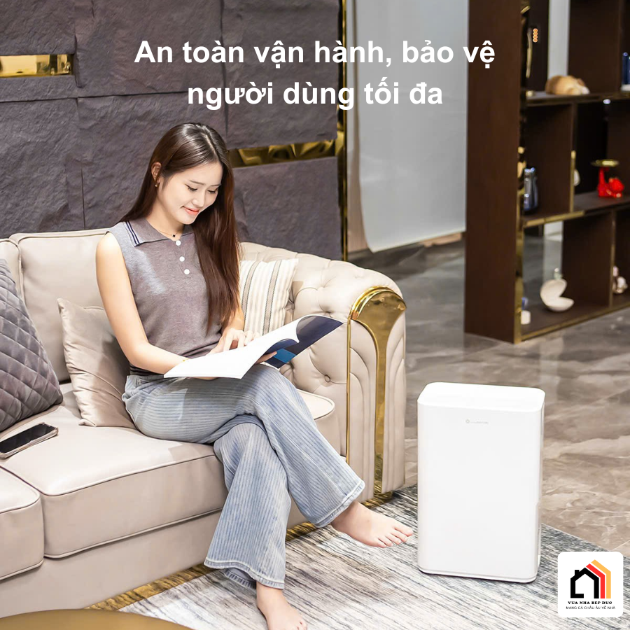 Máy hút ẩm Lumias D6S-12L được trang bị hàng loạt tính năng an toàn như tự động ngắt khi bình chứa đầy để tránh tràn nước, cùng chế độ khóa trẻ em giúp ngăn ngừa việc thay đổi cài đặt ngoài ý muốn. Máy còn hoạt động ổn định ở nhiệt độ thấp tới 5°C, đảm bảo độ bền cao và khả năng thích ứng tốt với nhiều điều kiện thời tiết khác nhau.
