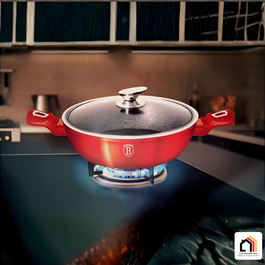 Điểm cộng lớn tiếp theo của Nồi Chảo 2in1 Berlinger Haus 28cm là được trang bị công nghệ Turbo Induction hiện đại. Công nghệ này giúp nhiệt lượng được phân bổ đồng đều trên toàn bộ đáy nồi, làm nóng nhanh và ổn định trong suốt quá trình nấu. Nhờ khả năng truyền nhiệt hiệu quả, Nồi Chảo 2in1 Berlinger Haus 28cm giúp rút ngắn thời gian chế biến món ăn, đồng thời tiết kiệm gas hoặc điện năng đáng kể. Sản phẩm tương thích với nhiều loại bếp như bếp gas, bếp hồng ngoại và đặc biệt là bếp từ.
