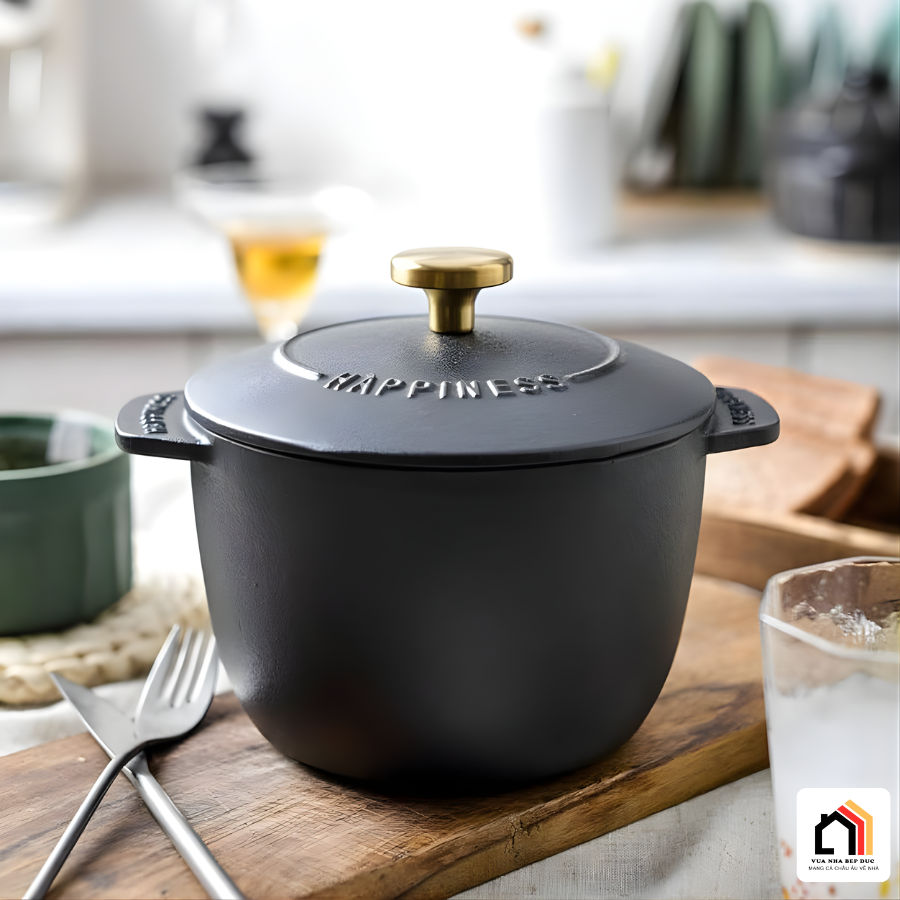 Nồi gang thô Happiness là dòng nồi được nhiều gia đình lựa chọn nhờ khả năng nấu ăn giữ trọn hương vị nguyên bản của thực phẩm. Với kích thước vừa phải, sản phẩm đặc biệt phù hợp cho những bữa ăn gia đình nhỏ, nấu phần ăn cá nhân hoặc chế biến các món cần ninh, kho kỹ. Không chỉ đáp ứng tốt nhu cầu sử dụng hằng ngày, nồi gang thô Happiness còn ghi điểm nhờ thiết kế tinh tế, dễ dàng kết hợp với nhiều không gian bếp khác nhau, từ truyền thống đến hiện đại.