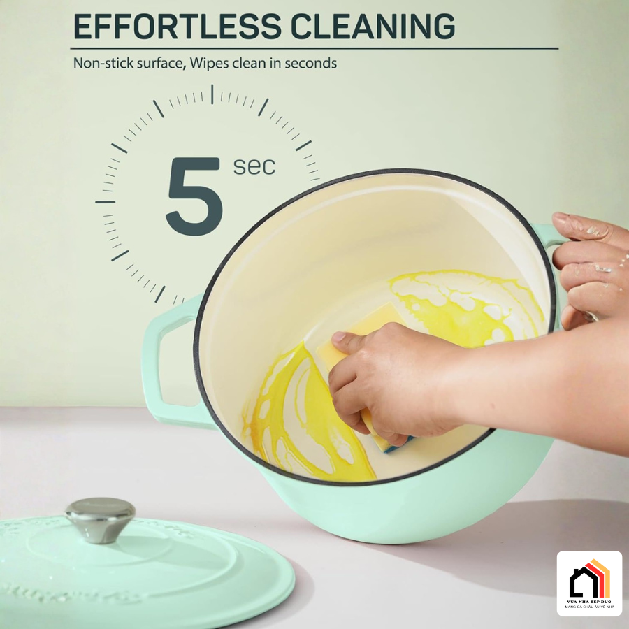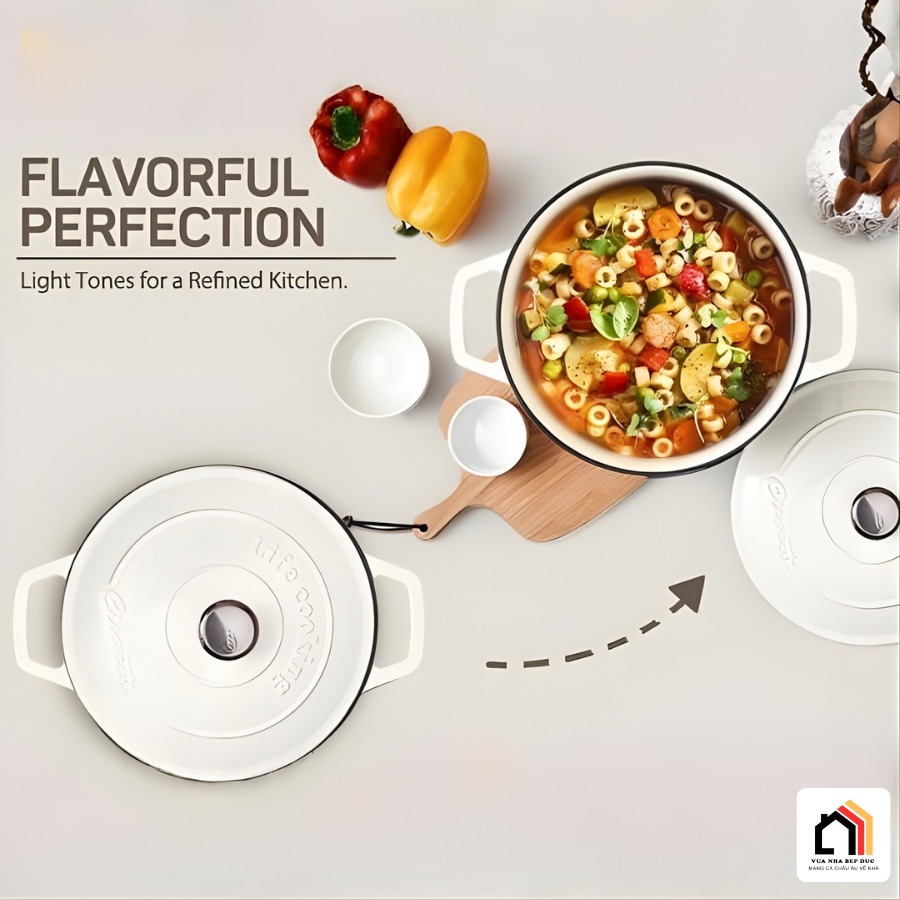 Không chỉ giới hạn trong một kiểu nấu, nồi gang tráng men cao cấp Ciwete đáp ứng đa dạng nhu cầu chế biến như hầm xương, nấu súp, kho thịt cá, nấu cháo, lẩu hay thậm chí là nướng trong lò. Khả năng chịu nhiệt tốt và phân bổ nhiệt đồng đều giúp món ăn giữ được hương vị tự nhiên, thơm ngon và hấp dẫn hơn so với các loại nồi thông thường.