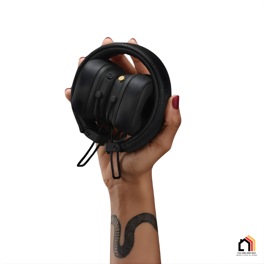 Tai Nghe Marshall Major V được hoàn thiện với ngôn ngữ thiết kế tinh tế, nổi bật cùng logo Marshall đặt ở hai bên earcup, kết hợp chất liệu giả da cao cấp tạo cảm giác sang trọng và dễ nhận diện thương hiệu. Phần khung tai nghe được tối ưu gọn nhẹ, cho phép gập lại nhanh chóng, giúp việc cất giữ trở nên thuận tiện hơn khi di chuyển, đi làm hay du lịch dài ngày mà không chiếm nhiều không gian.