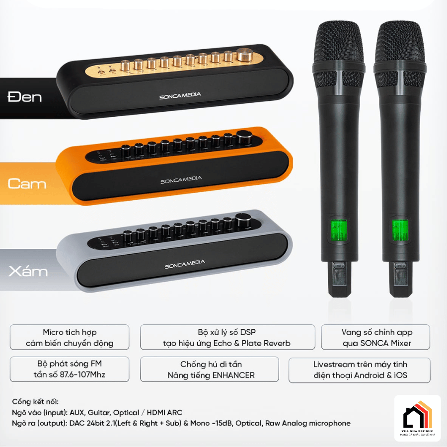 Người dùng có thể điều chỉnh nhanh các thông số trực tiếp trên thiết bị hoặc tinh chỉnh chi tiết hơn thông qua ứng dụng SONCA Mixer, phù hợp với nhiều không gian và phong cách hát khác nhau.
